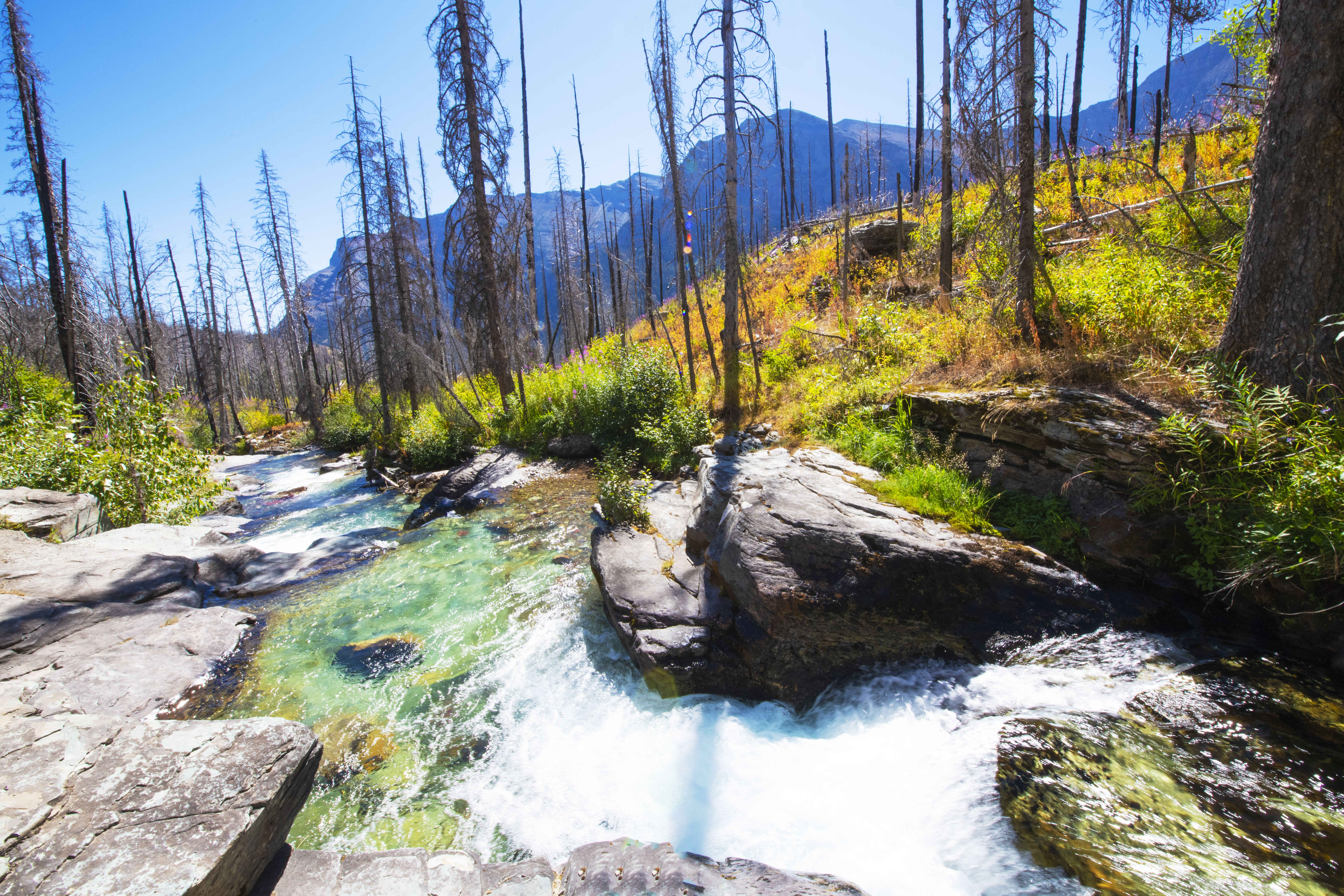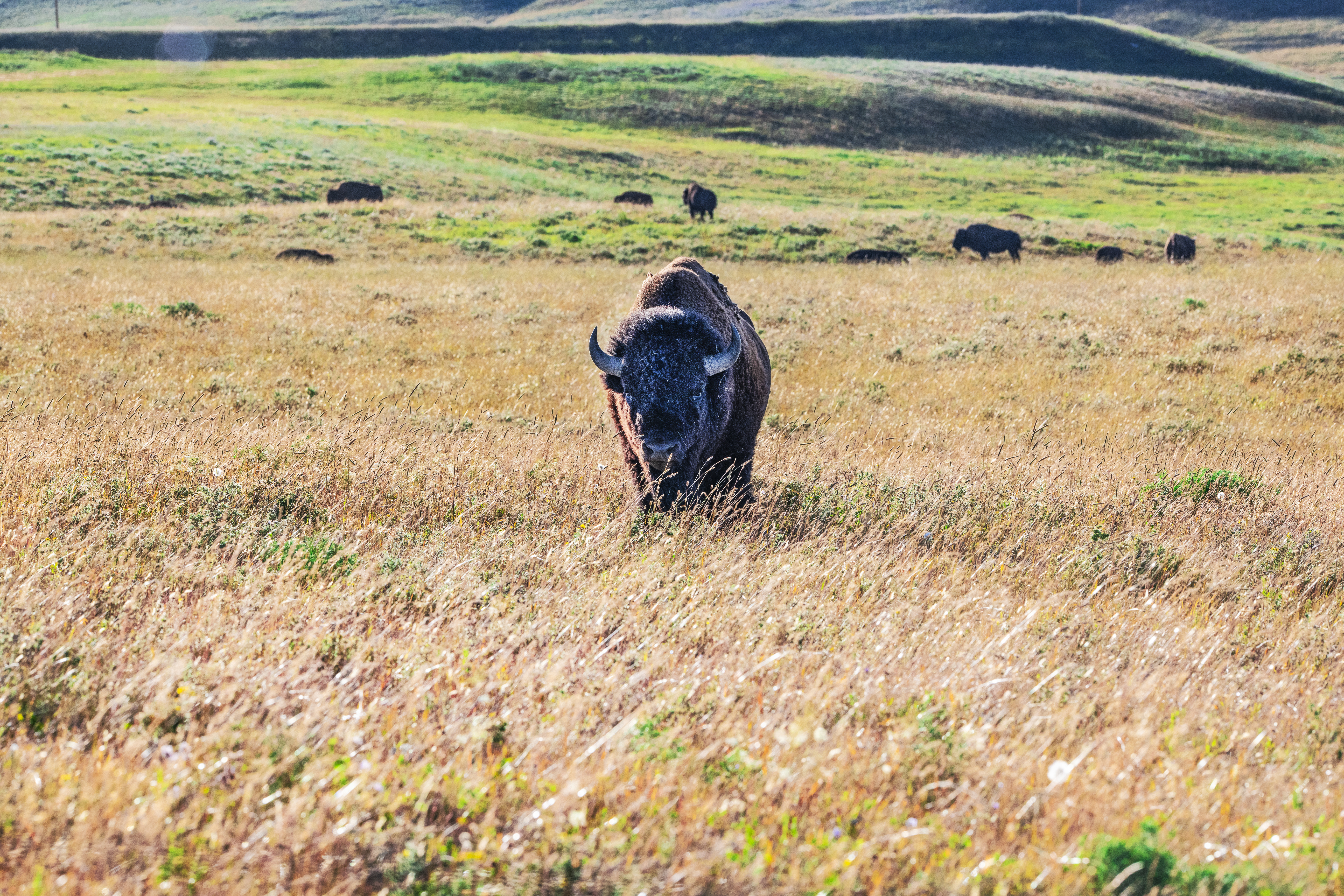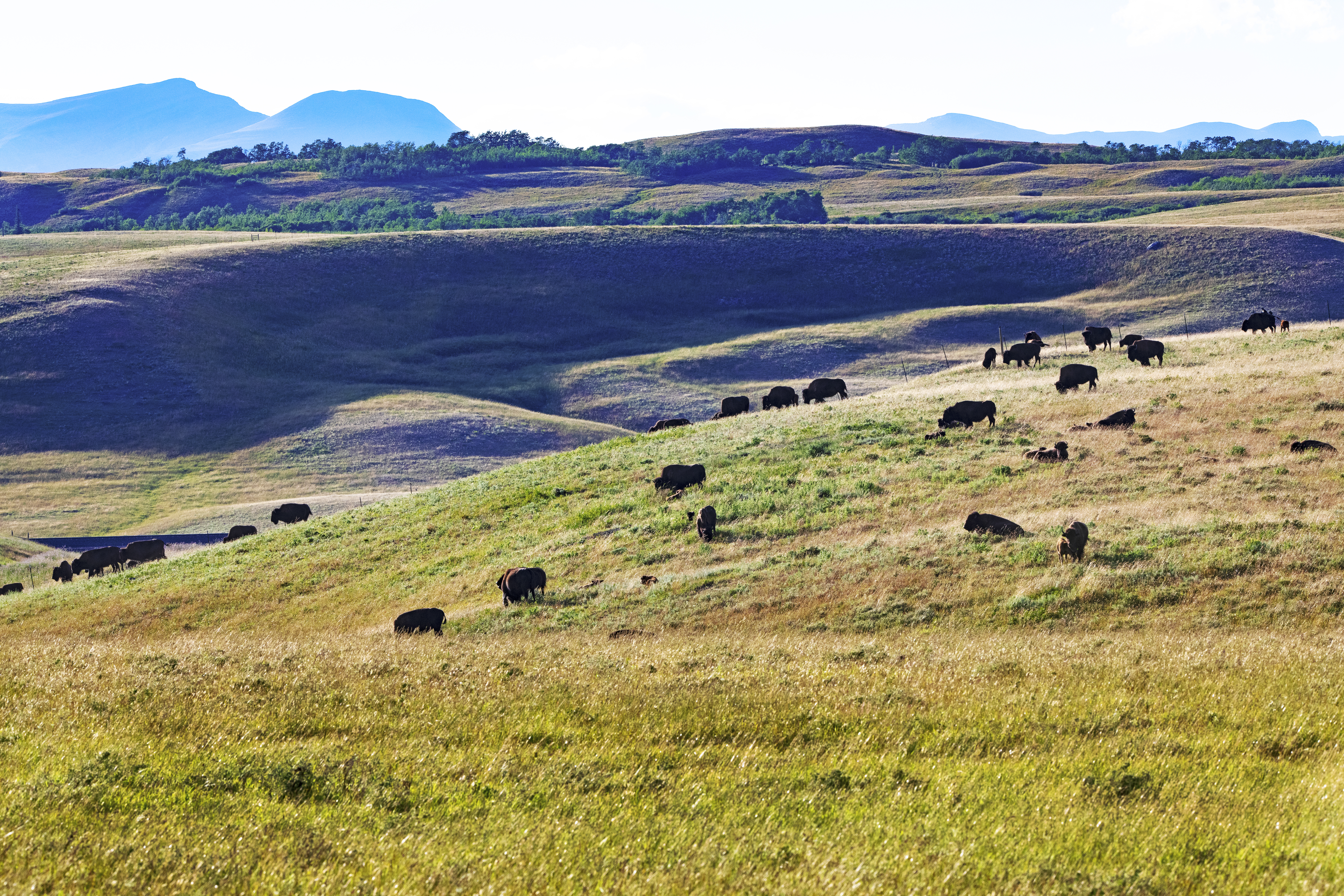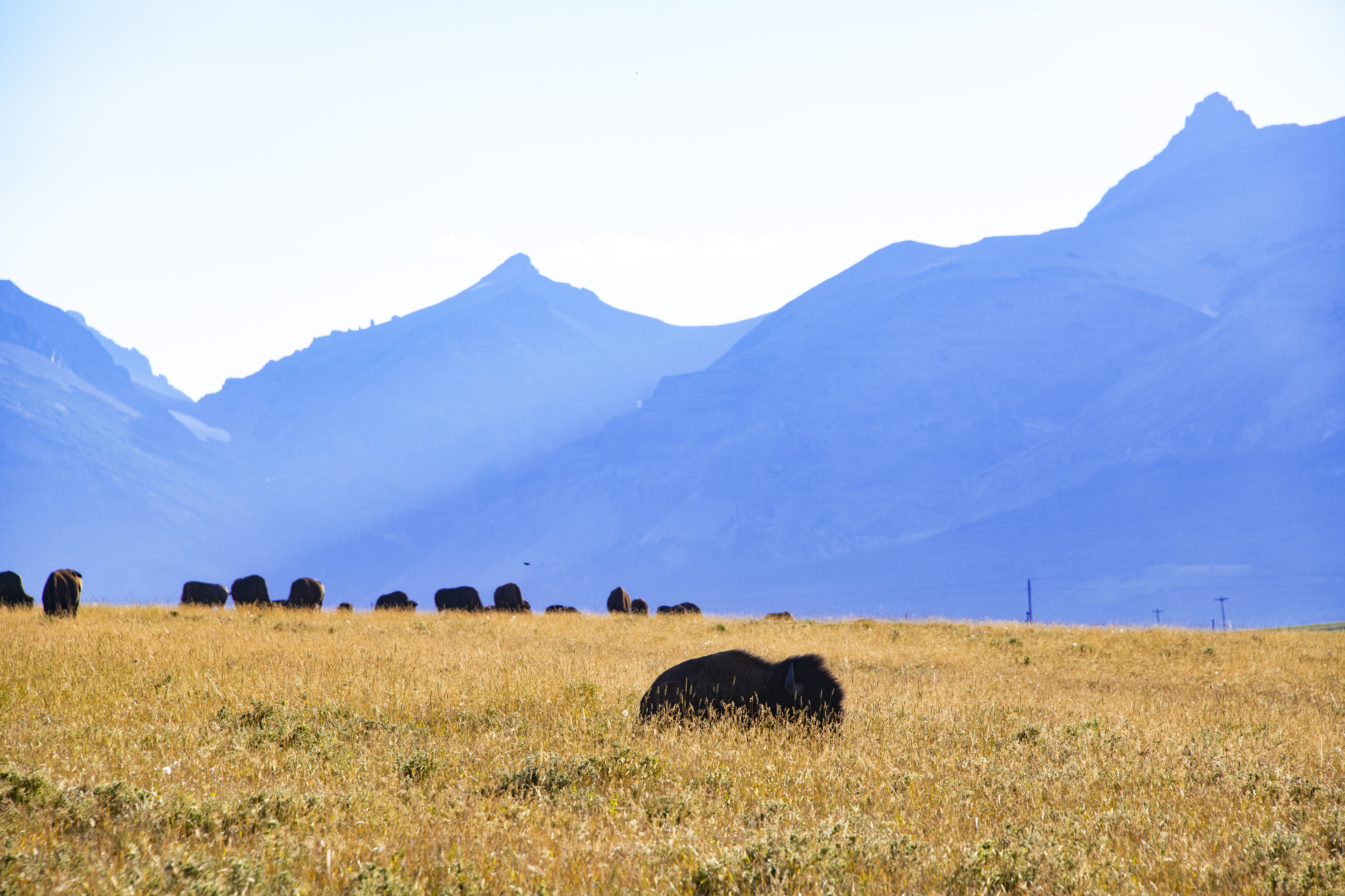 The restoration of the Buffalo on the Blackfeet Nature Reserve is visible from the highway, and the Iini Buffalo Spirit Center is seen as a wholistic approach to restoring livelihood, and therefore a treatment for PTSD among other sicknesses through the connection of land, water, buffalo, culture and water, connected to the Blackfeet People.